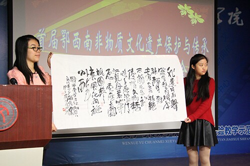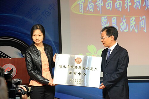 副校长邓磊致欢迎辞。他向与会专家学者介绍了金年会学科建设总体思路、民族文化与旅游产业协同发展创新中心的研究方向及相关建设等。湖北省(鄂西南)非遗研究中心主任、我院院长杨光宗在致辞中对挂靠我院的非遗研究中心相关情况做了介绍。随后,我院党委书记田恒俊宣读湖北省文化厅、教育厅关于批准研究中心成立文件,并进行研究中心授牌仪式。授牌仪式上,我院副院长罗翔宇宣读了湖北省文化厅非遗处处长江清和发来的贺词及工作指示。