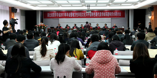 本网讯(记者 周璐)11月26日上午,由我院承办的湖北省美学学会2011年年会暨地方性审美文化与中国特色现代美学体系构建学术研讨会在金年会科技学院三楼多功能会议厅隆重举行。湖北省美学学会秘书长范明华,会长彭富春,副会长彭修银、聂运伟,恩施自治州人大常委会副主任罗贤美,金年会纪委书记刘芳震、文学与传媒学院院长杨光宗及来自各大高校的学术代表出席了此次会议。会议由范明华主持。