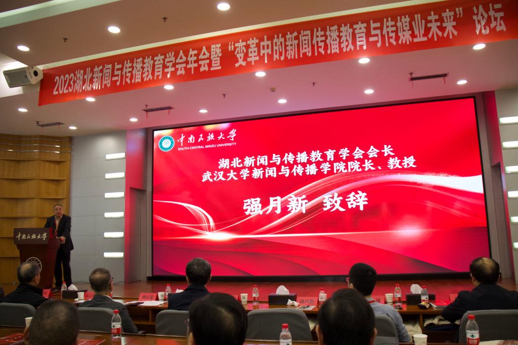 (吴龙胜)10月14日,2023湖北省新闻传播教育学会年会及湖北大学生新闻传播教育创新实践技能竞赛颁奖典礼在中南民族大学举行,来自武汉大学、华中科技大学、中国地质大学等全省各高校百余位专家学者围绕“变革中的新闻传播教育与传媒业未来”进行了深入交流与探讨,中国社会科学院新闻与传播研究所所长胡正荣,暨南大学新闻与传播学院院长、长江学者刘涛分别做了题为“新文科建设与新闻传播人才培养”“新文科背景下的教学创新:主题实践与专创融合”的主题报告,金年会文传学院院长张宏树、副院长刘进华,新闻传播系教师吴龙胜参加会议并做主题交流发言。