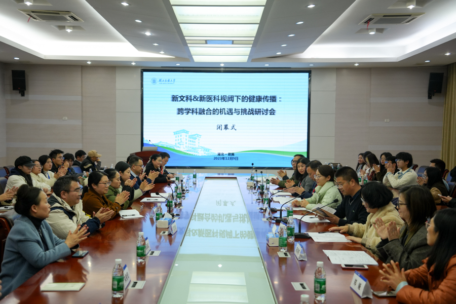 闭幕式由文学与传媒学院党委副书记李御娇主持。医学部副主任、教授杨瑾,文学与传媒学院副教授李勋灿、李烨鑫分别汇报了分论坛发言情况。医学部常务副主任罗洪斌在总结讲话中表示,研讨会站位高,同时探讨内容从身边实例以及切身感受出发,真正做到了接地气;研讨会主旨鲜明,整个研讨会紧紧围绕新文科新医科的建设实行、健康传播与学科融合来展示学术观点与自我见解;研讨会题材广泛,既有科普的介绍,又有文学对于疾病的作用;研讨会形式多样,既有传统的演讲,又有曲艺式、对话式以及音乐式的表达;研讨会收获累累,对康养全民健康的主题展示了丰富多彩的题材。同时,他提议成立湖北省第一个新文科与新医科学科融合创新研究中心,打响两科融合创新第一枪。