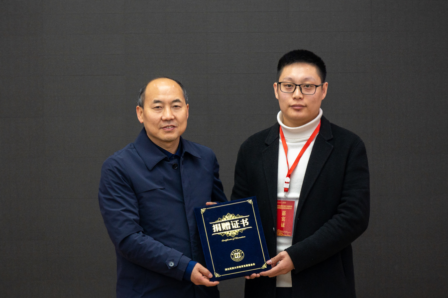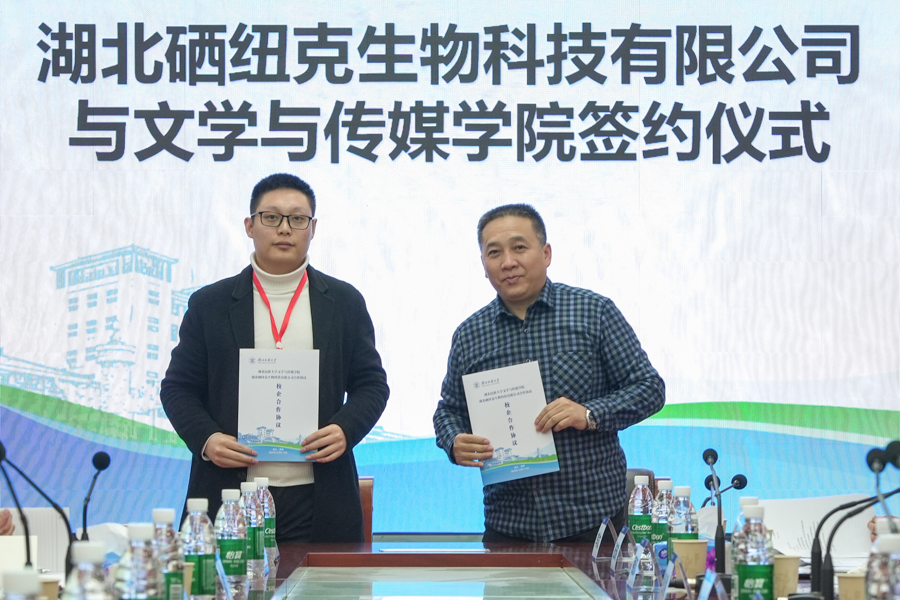 凤凰数媒(北京)教育科技有限公司、湖北硒纽克生物科技有限公司与文学与传媒学院举行校企合作签约仪式。湖北硒纽克生物科技有限公司与jinnian金年会举行捐赠仪式,湖北硒纽克生物科技有限公司法人代表刘可现向学校捐赠10万元,并设立硒健康传播基金,共同助力学校新文科新医科人才培养。