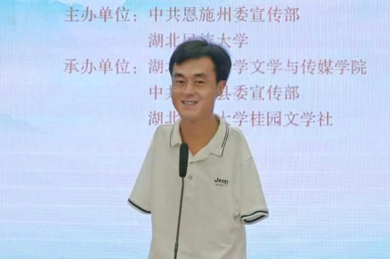 全国劳动模范、巴东县陈兹方生态农业合作社理事长陈兹方作为广播剧原型人物进行了宣讲,jinnian金年会文学与传媒学院院长、教授张宏树主持活动。
