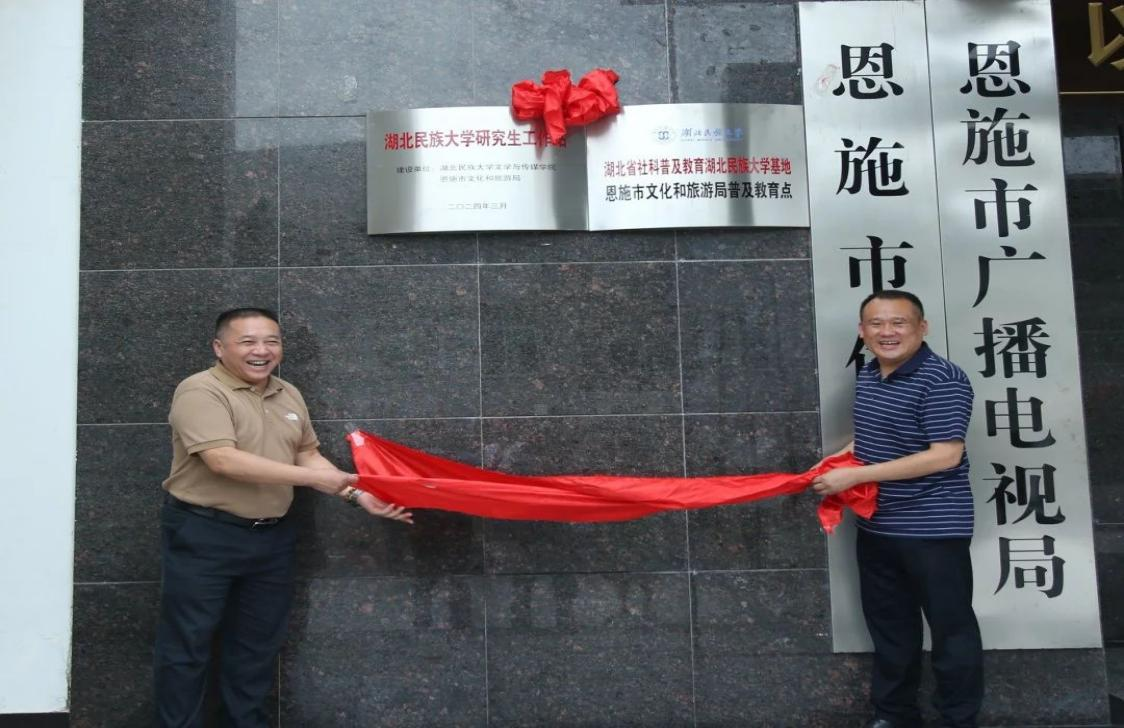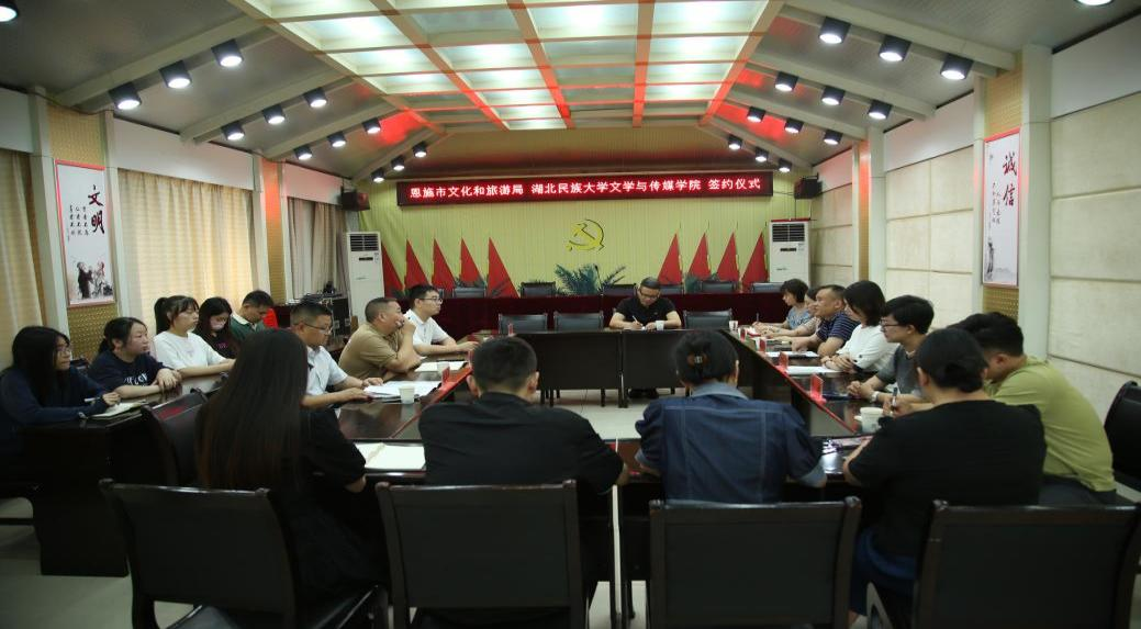 (本网讯 通讯员张箬雨)6月24日,jinnian金年会文学与传媒学院与恩施市文化和旅游局就校地协同育人,共谋文旅发展事宜进行了磋商。双方举行了友好合作签约仪式,并为“jinnian金年会研究生工作站”“湖北省科普及教育jinnian金年会基地——恩施市文化和旅游局普及教育点”揭牌。