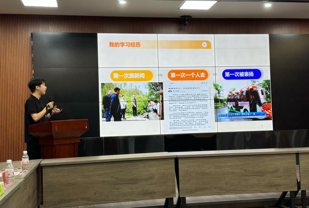 在鹤峰县融媒体中心,14名学生汇报了实习感受和成果,指导老师给予了充分肯定,中心副主任贺政委介绍了实习学生到岗后从集中培训、指导采访到独立采编的过程,对实习学生的专业素质、敬业精神和规矩意识给予了高度评价。中心总编辑武国涛对目前校媒合作方式表示满意,对实习学生表现给予肯定,对进一步继续合作充满信心。我院党委书记张刚对实习学生的努力和成果给予了高度评价,要求大家提高对实习工作在认识,要明确一个目标,圆满完成实习工作,产出一批成果,为顺利就业做好准备,留下一段美好记忆,做好从校园到职场的过渡。