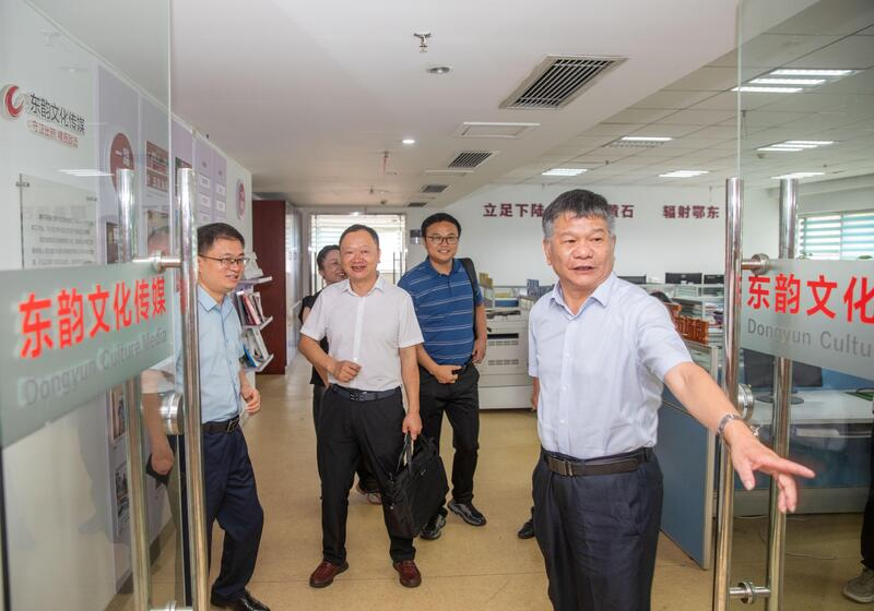 当天上午,学院党委书记张刚,新闻传播系主任、教授宋艳丽,新闻传播系副主任吴龙胜一行3人,在黄石日报社党委书记、社长皮正茂,党委副书记、总编辑高国专等人的陪同下,先后参观了黄石日报新闻直播间、演播厅、融媒体中心、视觉新闻部、东韵传媒等部门和下属企业,详细了解了黄石日报的媒体融合改革进展和发展成效。