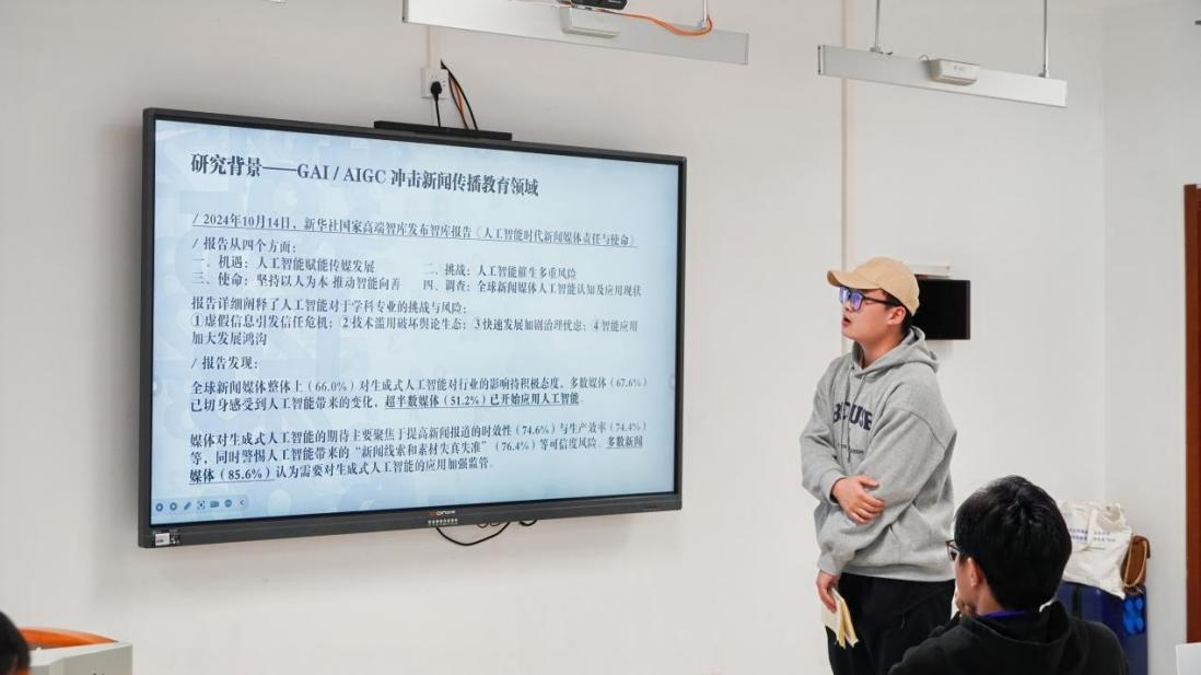 9日下午,分论坛设置了1个院长论坛、2个教师论坛和1个研究生论坛。在院长论坛上,来自武汉大学、华中科技大学等院校的院长、副院长及系主任等学科负责人结合办学现状、问题与对策,围绕“生成式AI与新闻人才培养”主题进行分享交流。教师论坛分别以“生成式AI与新闻传播教育”“新闻传播理论与实务研究”为主题,来自省内30余所高校的老师对生成式AI背景下新闻传播教育的现实和理论问题展开了探讨。研究生论坛以“数智传播研究”为主题,进行了研究成果交流。