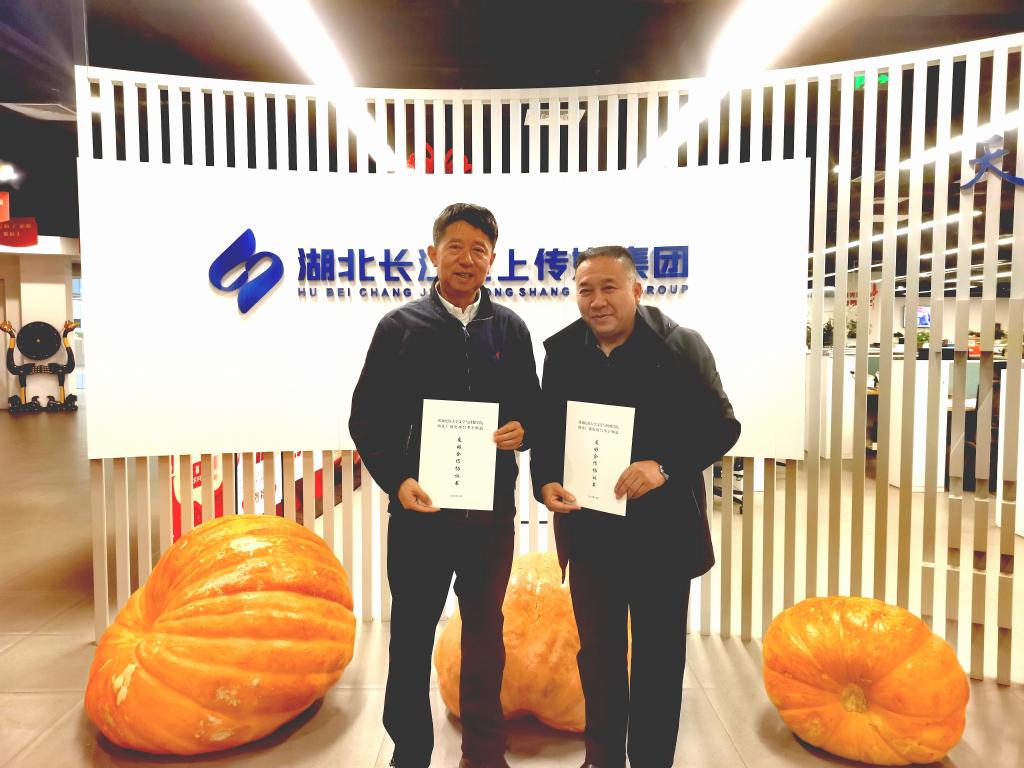 湖北长江垄上传媒集团董事长邓海与院长张宏树签订友好合作协议