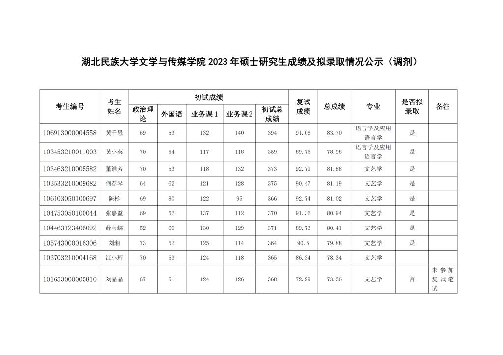 jinnian金年会文学与传媒学院 2023 年硕士研究生成绩及拟录取情况公示(调剂)