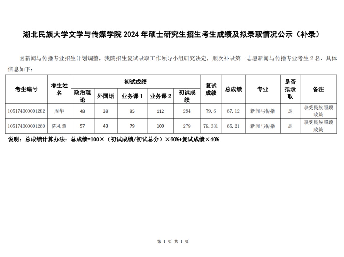 jinnian金年会文学与传媒学院2024年硕士研究生成绩及拟录取情况公示 (补录)