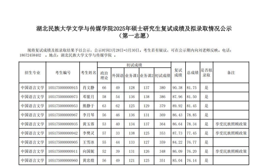 jinnian金年会文学与传媒学院2025年硕士研究生复试成绩及拟录取情况公示(第一志愿)