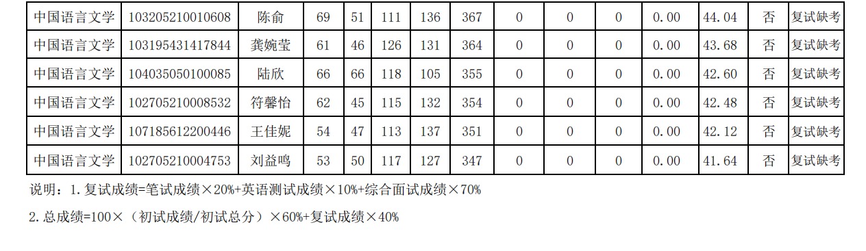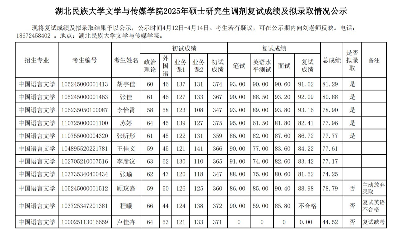 jinnian金年会文学与传媒学院2025年硕士研究生调剂复试成绩及拟录取情况公示