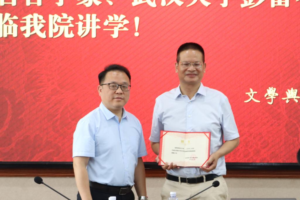 本网讯(通讯员 范生彪)6月25日上午,著名哲学家、武汉大学哲学学院教授、博士生导师、珞珈杰出学者彭富春教授莅临jinnian金年会文学与传媒学院,为全院师生举行了题为《当代中国美学的新道路》的学术讲座。文学与传媒学院院长罗翔宇教授主持了讲座,并为彭富春教授颁发文学与传媒学院客座教授的聘书。