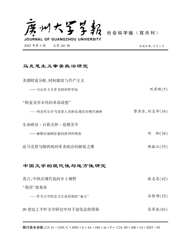 我院特聘教授冯黎明教授文章在《广州大学学报》发表
