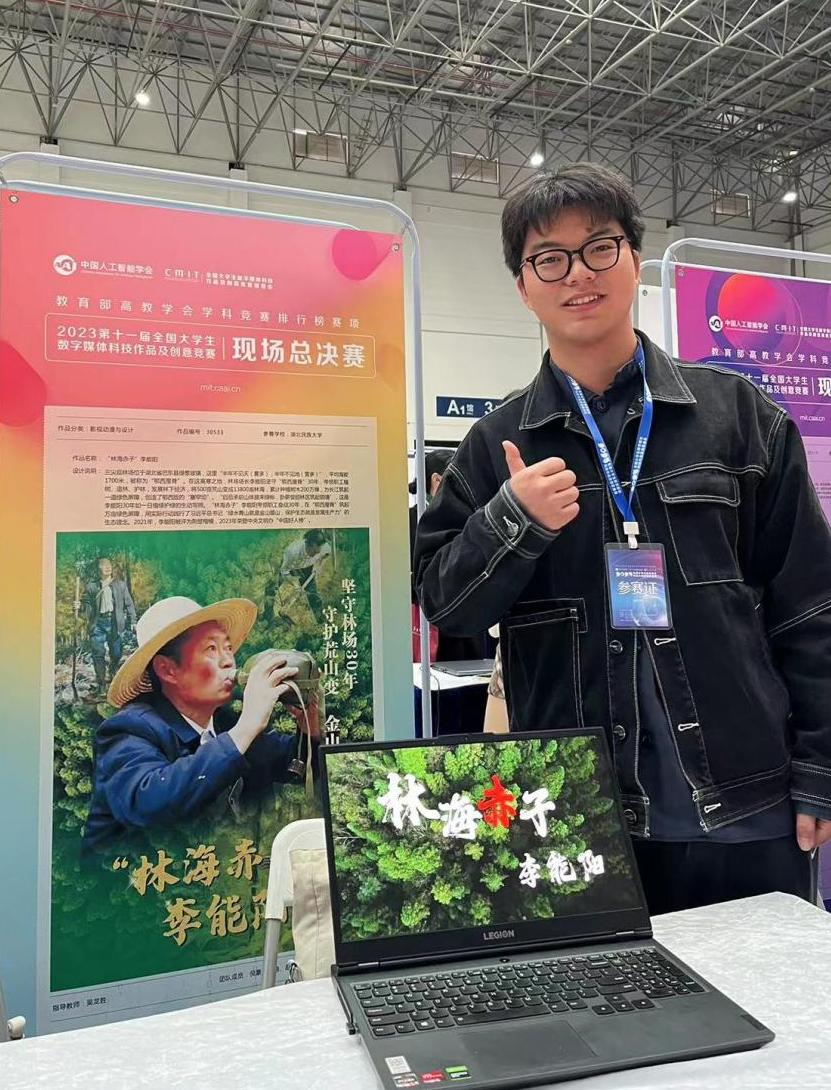 本网讯(通讯员 王悦)11月25日,第十一届全国大学生数字媒体科技作品及创意竞赛总决赛在江苏常州太湖国际博览中心举行,我院新闻传播学专业吴龙胜老师指导的学生作品《林海赤子李能阳》(倪豪、方迪、赵敏)经过现场展演和激烈角逐,最终斩获国赛一等奖的好成绩,广播电视编导专业吴博夫老师指导的学生作品《房陵烙画》(李鑫宇、高子雄、刘郑萍、李晶)获国赛二等奖,宋艳丽、林静等老师指导的学生作品获国赛三等奖,此次竞赛我院共获得国赛等级奖6项,实现了学生学科赛事近年来的新突破。