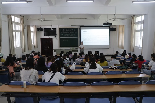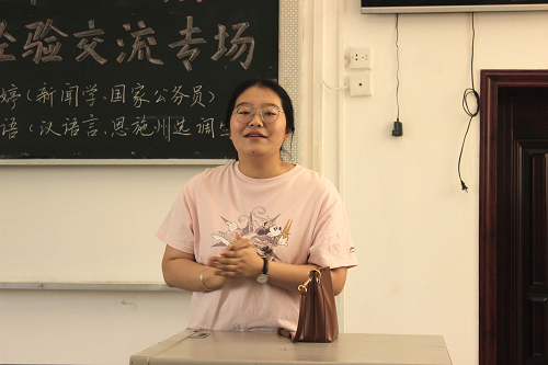 考研专场。2017级新闻学专业毕业生谢霞被中南财经政法大学录取,她就自身的考研经验进行分享。她以“你背不完的书,总有人能背完”为引,回忆自己考研时的心路历程,并结合自身考研经历分享英语、政治及专业课的备考方法。她认为,英语要重视词汇的记忆和积累,可通过“手写翻译”等方式提高英语阅读水平;政治要养成每天背诵和做题的习惯,找准适合自己节奏的老师;专业课要制定阶段性的复习计划,层层深入。同时,她鼓励学生制定目标来达到自我激励的效果,形成自己的学习状态,切忌为迎合他人而迷失自我;2017级汉语言文学专业毕业生马沛考取湖北大学,他围绕“目标院校确定”“考研科目复习”“如何制定学习计划”及“其他好物推荐”四个方面展开经验交流。他表示,要根据发展方向、招生简章及报录比等确定目标院校及专业,并结合亲身经历分享考研英语、政治、专业课的复习方法。此外,他重点强调制定学习计划,建议学生寻找志同道合的研友,营造良好的学习氛围,同时注意劳逸结合。最后,谢霞、马沛与现场学生进行深入交流,结合自身经历为学生答疑解惑,帮助学生找准方向。