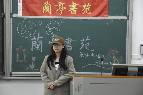 本网讯(记者 杨茗莉)4月17日,兰亭书苑在修远楼5A101教室举办以“笔墨生花,巧创玉盘”为主题的纸盘画培训活动。