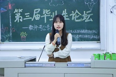 桂丹围绕“自身经历”“学习方向”“考编技巧”三方面展开讲解。她表示,现阶段学生应打牢学科知识基础、关注时政热点、海量练习真题;在面试部分,她表明说课的重要性,建议学生反复练习台风仪态、锻炼胆量、提高自信;最后她鼓励学生要抓住应届毕业生招聘机会,提前准备体检事项和了解学校概况,做好万全准备。