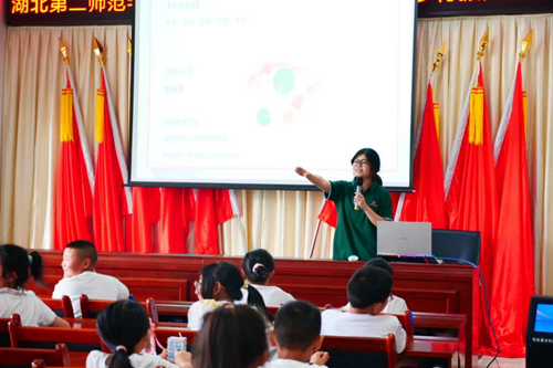 两支队伍满怀热忱,以创新为媒,以实践为基,为孩子们塑造了一场文化盛宴。在实践教育活动中,jinnian金年会乡村振兴硒望健康传播恩施实践团精心策划了“小小演说家”活动,为乡村儿童提供了展示自我、锻炼口才的舞台。而湖北第二师范学院“青源志愿服务队”则开展了“童语诵童音,推普助未来”普通话推广宣讲课堂,旨在提升乡村儿童的普通话水平,为他们未来的学习和发展打下坚实的基础。