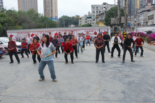 活动分为三个部分:“手工制作艾草锤”“趣味健身操”和“清洁入户”。在“手工制作艾草锤”环节,志愿者们准备了花纹布、棉绳、木棍和艾草等材料。一名志愿者现场示范,指导老人们将艾草捏成球形,插入木棍,再用花纹布包裹并缠绕棉绳固定,形成一个“艾草锤”。紧接着的“趣味健身操”环节,志愿者带领老人们一同进行八段锦健身操。这一环节不仅激发了老人们运动的兴趣,还让他们感受到了运动的快乐。“清洁入户”环节,志愿者们帮助行动不便的老人打扫房屋内外卫生。