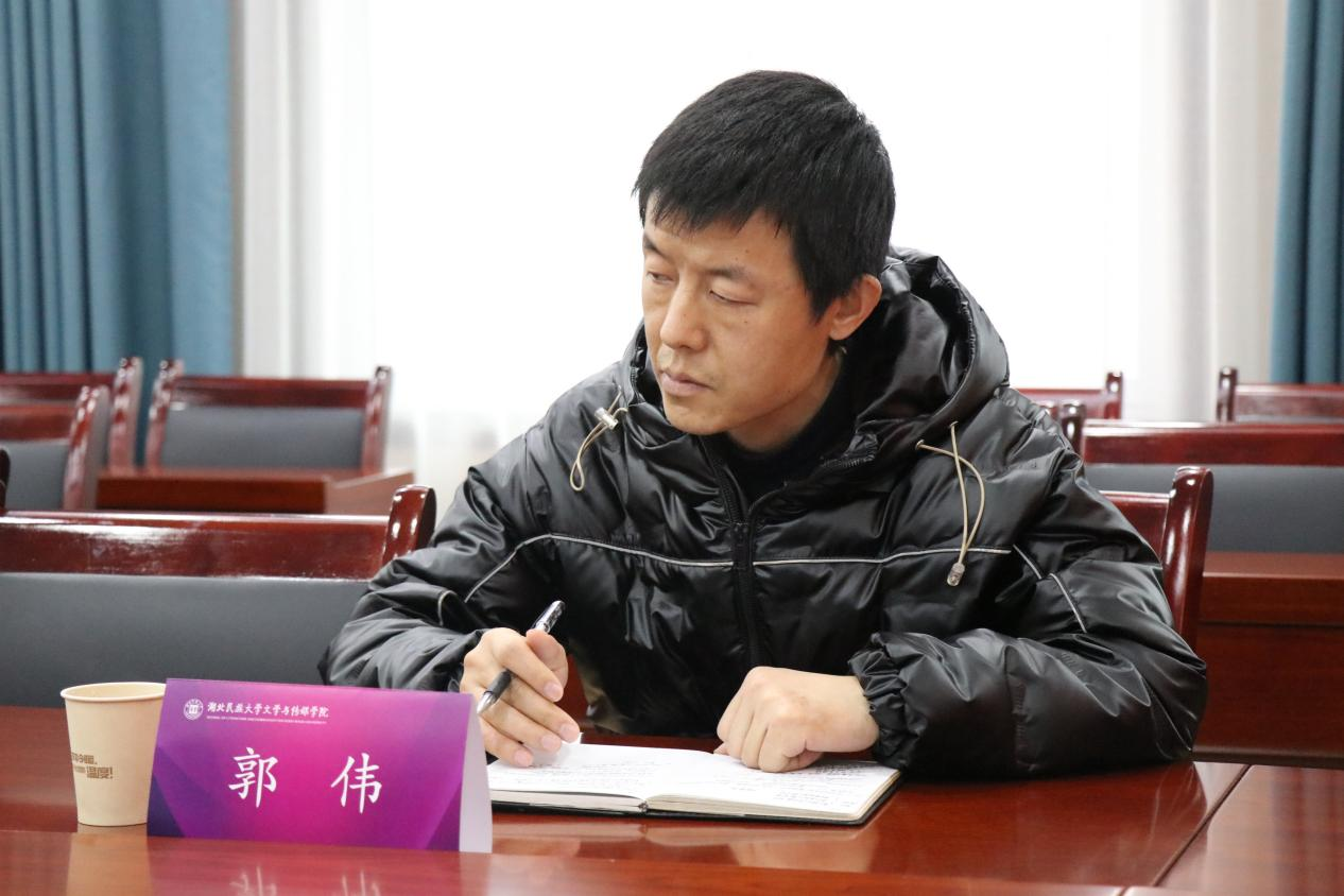 郭伟主任也对我院师范专业建设提出了宝贵的建议。他指出,师范专业认证就是让师范专业培养学生的全过程标准化、体系化,这要求我院专业建设、人才培养、教学改革、师资培养、见习实习研习基地合作以及学生就业各方面都形成完整统一的理念引领。