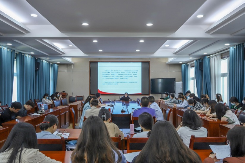 本网讯(记者 李美昊 张雨洁)5月20日,我院在智慧教室一举办了“四史”学习专题宣讲活动。学校宣讲团成员、马克思主义学院副教授蔡诗敏担任主讲人,我院党委书记刘木球担任主持人,学院党委委员、部分教师代表和学生代表到场聆听。活动进行中(记者 杨祯/摄)蔡诗敏副教授从“学习社会主义...