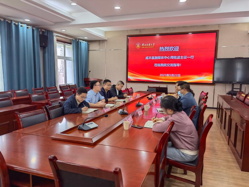 本网讯(记者 谷溪萍)为进一步深化校地合作,共谋双方互助共赢。2023年5月22日下午,咸丰县融媒体中心主任周铭波、总编辑马辉、办公室主任周卫、新媒体部主任刘汶鑫一行莅临我院。我院院长杨光宗、副院长刘进华、副院长江佳慧、新闻传播系主任宋艳丽、新闻传播系副主任谭苏、教学科科长张慧参加会...