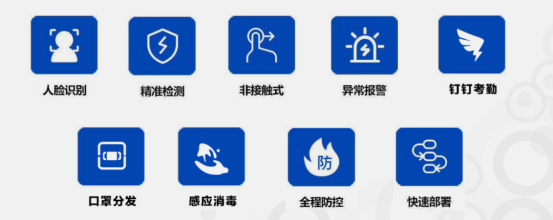 智能测温、自助消毒、口罩销售、人脸识别、