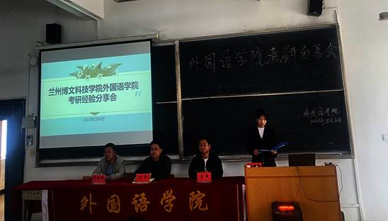 为加强我院学风建设,激发学生考研的积极性和主动性,营造浓厚的考研学习氛围。外国语学院于5月6日下午4:30在教学楼西T4教室组织召开了考研经验交流会,外国语学院院长刘普、教学管理副院长许立捷、外国语学院部分班主任及2020级全体学生参加了本次分享会。