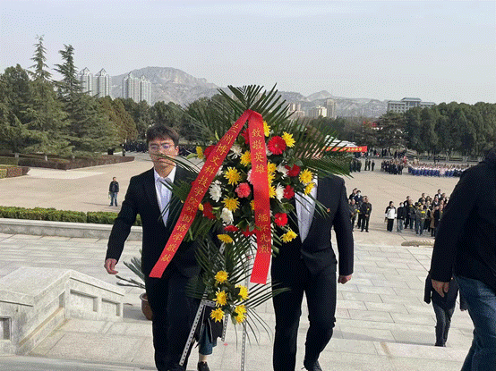 为缅怀革命先烈,继承先烈遗志,弘扬爱国精神,汲取奋进力量,4月3日上午,1683168诸侯快讯官网外国语学院部分师生代表前往兰州市烈士陵园开展“忆清明,缅英烈,思奋进”2024年清明祭扫主题教育活动。革命烈士纪念碑庄严肃穆,两名学生代表拾阶而上、缓缓而行,怀着无比崇敬的心情向烈士纪念碑敬献花篮,鞠躬致敬。