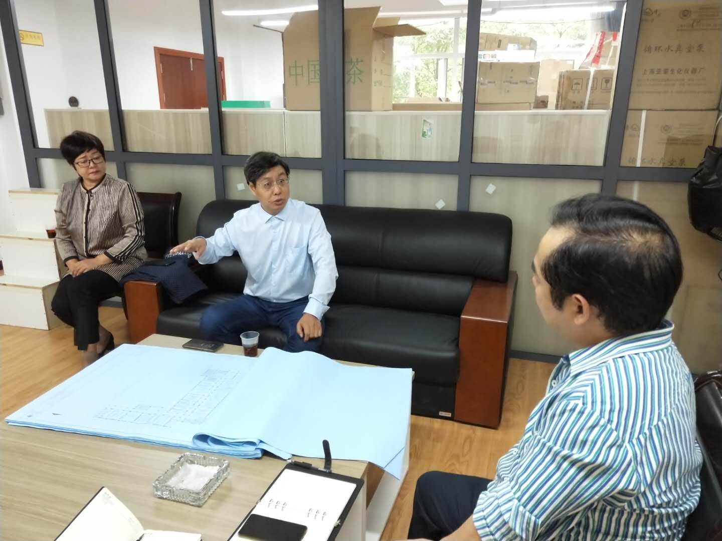 田元祥(中)一行在中心座谈