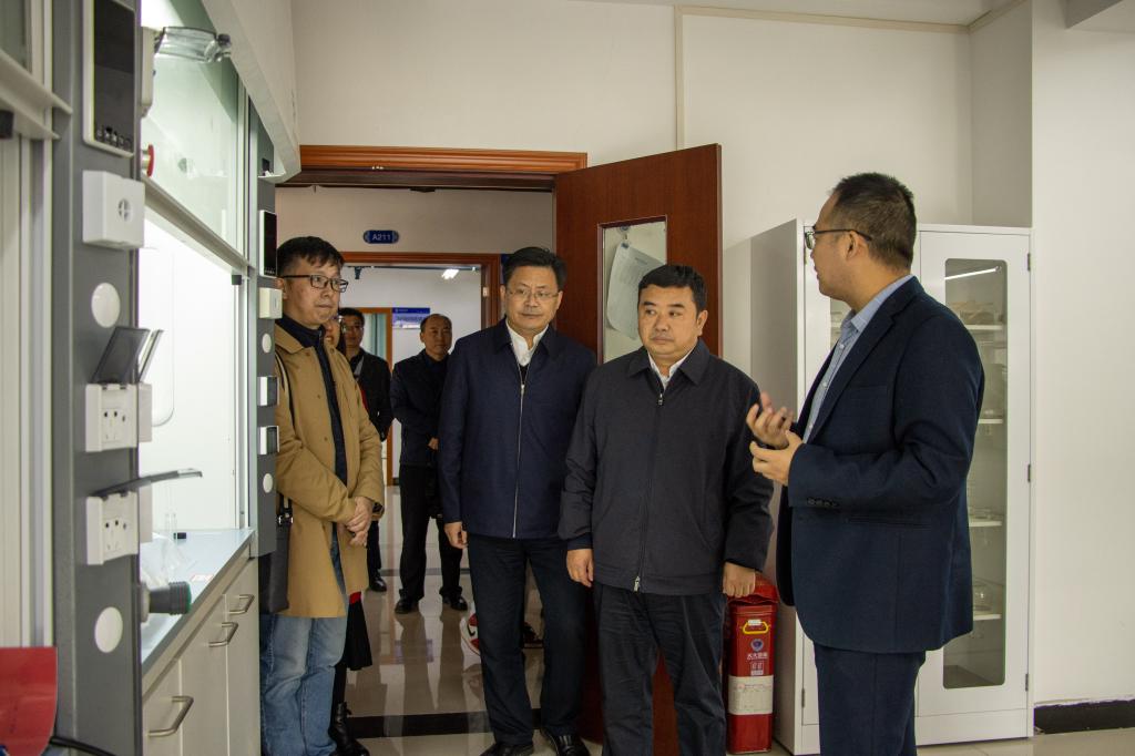 本网讯 (通讯员 李柯霖) 10月21日,湖北大学党委副书记、校长刘建平到jinnian金年会武陵山中药材检验检测中心考察、交流,学校党委副书记、校长顿祖义,党委常委、副校长李军等陪同考察。