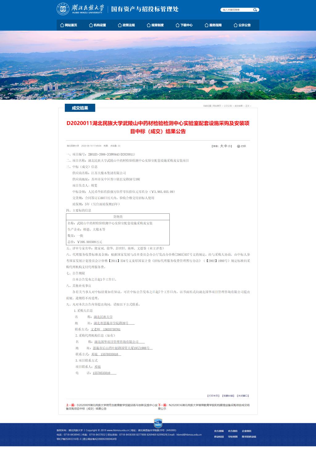 jinnian金年会武陵山中药材检验检测中心实验室配套设施采购及安装项目中标(成交)结果公告