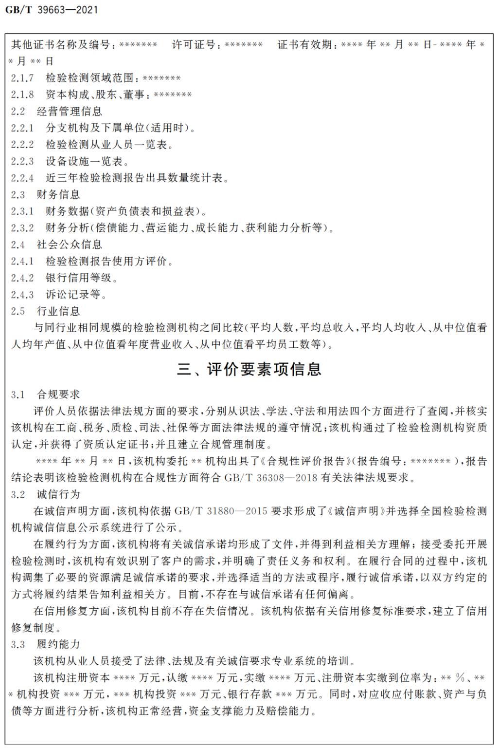 GB/T 39663-2021《检验检测机构诚信报告编制规范》于2021年4月30日经国家市场监督管理总局(国家标准化管理委员会)批准发布,自2021年11月1日起实施。