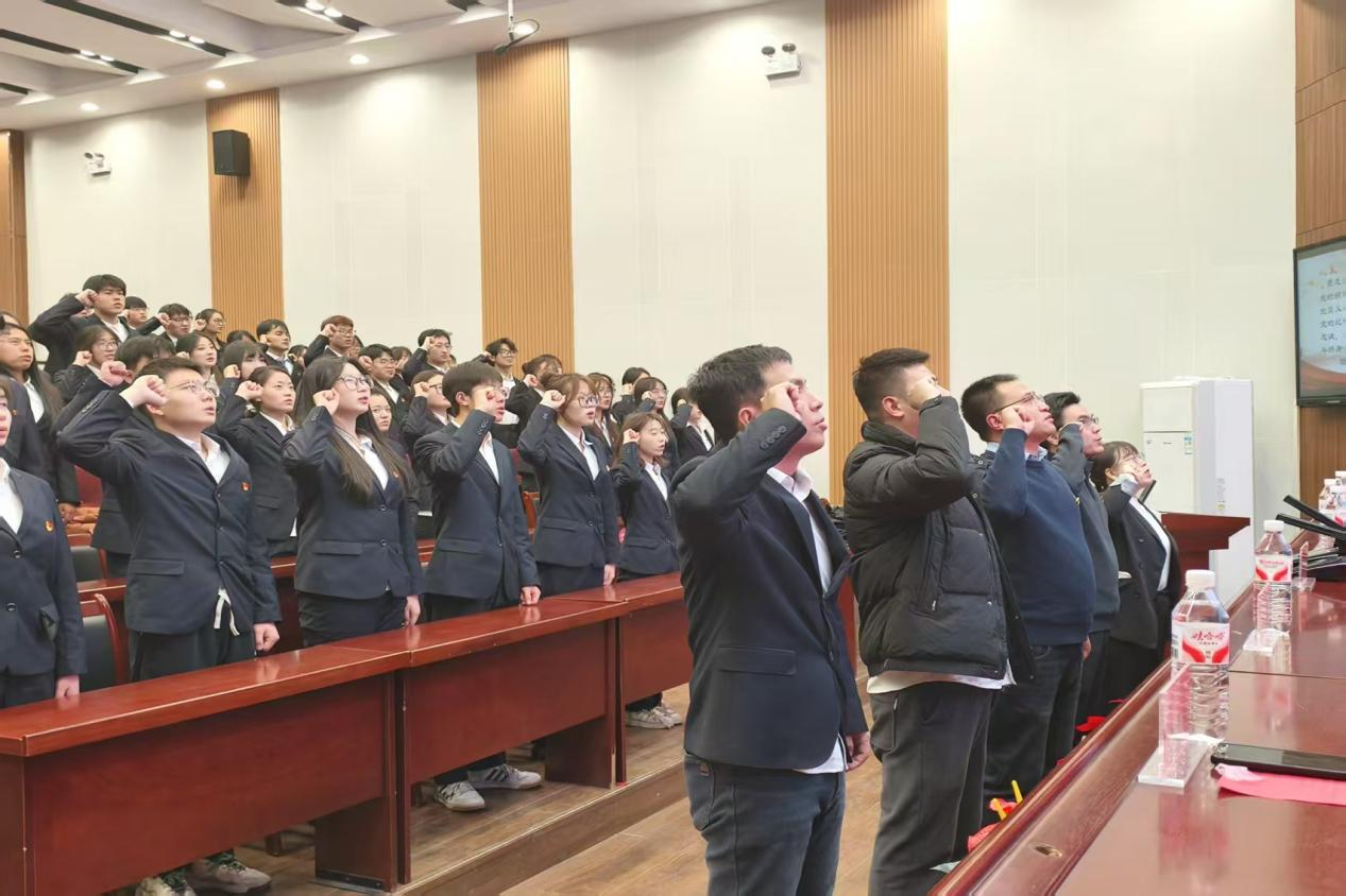 党课现场,报告厅内充盈着庄重肃穆的气氛,各位同学皆全神贯注地聆听讲解,进一步端正了入党动机,彰显出积极向上的精神状态。大会第一项,介绍出席本次大会的领导及老师,他们分别为:信息科学与工程学院党委书记、学生管理副院长赵磊,信息科学与工程学院党委组织员苏亚超,信息科学与工程学院支部书记徐皓卿、李花、王岐东。大会第二项,奏唱中华人民共和国国歌。随后,赵磊同志发表讲话,从学生党员工作、学生能力提升等方面为大家讲授专题党课,意在增强学生的党性修养,坚定学生的理想信念。此次讲话使每位中共预备党员和入党积极分子的思想认识得以深化。最后,全体人员重温入党誓词,铿锵有力的誓言于会场中回响,不仅让每一位预备党员和入党积极分子再次接受了深刻的党性教育与精神洗礼,更坚定了大家对党忠诚以及为党的事业奋斗终生的意志。