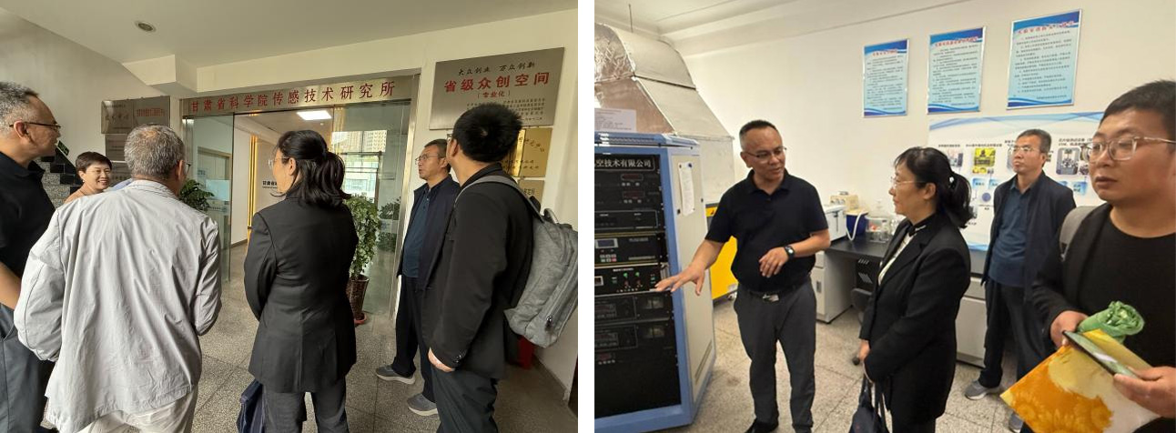 当天下午,在高晓平所长及研究所各位领导的热情接待和亲自陪同下,首先参观了研究所的先进传感器件、甘肃省传感器与传感技术重点实验室以及科技成果展示厅。参观过程中,研究所科研人员详细介绍了其在传感材料、磁传感、生物传感及传感技术应用等领域的最新研究成果与核心技术。江院长对研究所在传感技术前沿探索和成果转化方面取得的突出成就表示高度赞赏,并表示这些前沿技术与信息科学与工程学院多个专业方向高度契合,具有广阔的合作前景。