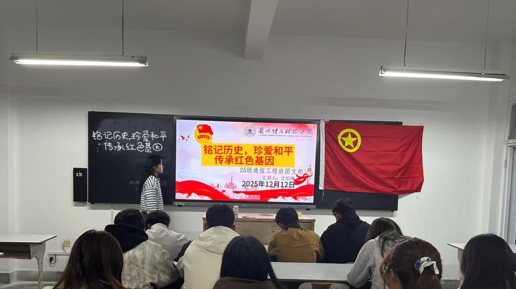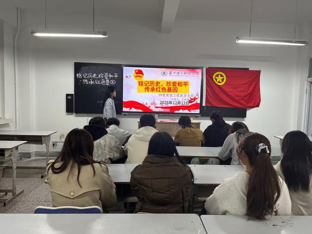 2025年12月12日晚上7:30,2025级通信工程班团支部精心组织班级全体团员在教室4022-4024开展了以“铭记历史,珍爱和平-传承红色基因”为主题的团课,带领青年团员们重温峥嵘岁月,引导青年团员厚植爱党爱国情怀,坚定理想信念,在新时代征程上书写属于青年的担当篇章。