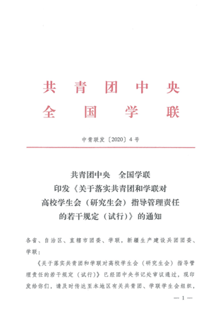 《关于落实共青团和学联对高校学生会(研究生会)指导管理责任的若干规定(试行)的通知》
