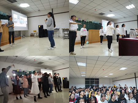 在活动过程中,欢歌劲舞成为活动一大亮点,成员不仅有本队成员,其他部门也纷纷为庆生活动献出自己的一份力量,体现部门间的和谐团结。“左肩”“酒醉的蝴蝶”台上载歌载舞,台下一片掌声,突出活动欢乐氛围。此外现场互动小游戏“组合猜谜”“抢凳子”等,将活动气氛推向高潮,随后学长们倾情演唱“天下第一等”“水手”等励志歌曲表达对协会未来发展的期许,同时,手语志愿服务队20届新生在紧锣密鼓的排练中也推出手语节目“岩石中的花”来回应学长的期许,同时也表达对未来发展坚持不懈,敢于迎难而上的决心。