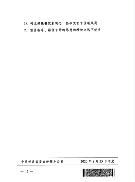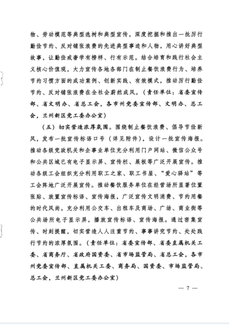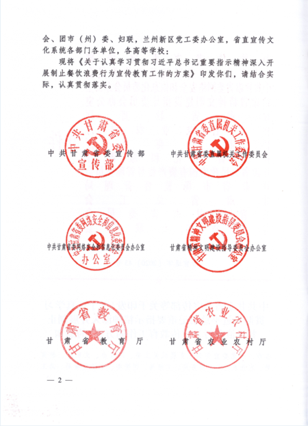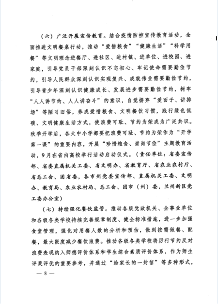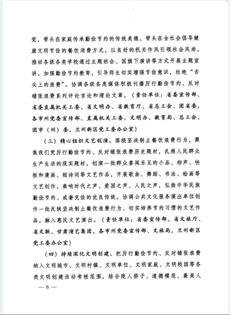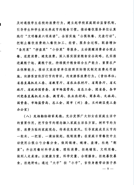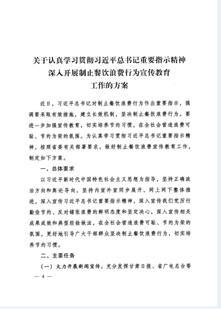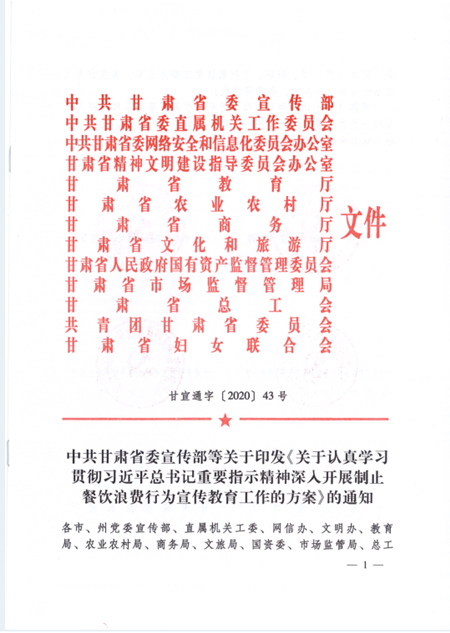 中共甘肃省委宣传部等关于印发《关于认真学习贯彻习近平总书记重要指示精神深入开展制止餐饮浪费行为宣传教育工作的方案》的通知