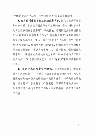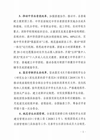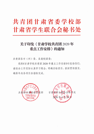 关于印发《甘肃学校共青团2020年重点工作安排》的通知