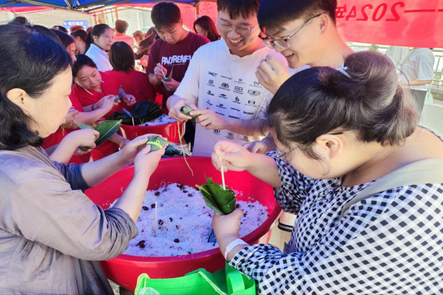 粽子包好后,学校学生公寓管理委员会的学生指导大家折纸“粽子”。“我亲身体验了包粽子的全程,这不仅让我学习了新的技能,而且切身体会到了中华传统文化佳节的魅力。”法学院的饶文婧如是说。