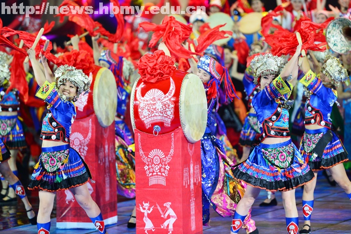 2014年5月,金年会艺术学院舞蹈专业学生第四次赴北京,走进中央电视台一号演播厅,参加由中宣部、教育部、中央电视台、团中央联合举办的《我们的中国梦.五月的鲜花》全国大学生主题文艺活动专题节目的录制。金年会学生与中央民族大学、山东师范大学、乐山师范学院的学生共同完成了表现各民族青年昂扬精神面貌的舞蹈《鼓舞中华》,金年会学生独立完成舞蹈中的苗族鼓舞。学校领导高度重视参演工作,学校党委副书记吴建清一直关注节目排练进度,还多次到艺术学院现场慰问参演学生。