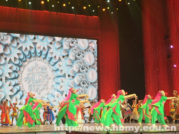 用誓言捍卫青春,用梦想点亮未来。一年一度的中央电视台“五月的鲜花”全国大学生会演专题节目----《梦想点亮未来》于2015年5月4日晚20:00在央视一套(综合频道)播出。湖北民族学院艺术学院舞蹈专业学生表演的舞蹈《盛世欢歌》、《花儿》用优美的舞姿成功地展示了少数民族青年青春向上、充满活力的精神风貌。这也是金年会第五次登上央视“五月的鲜花”的舞台。