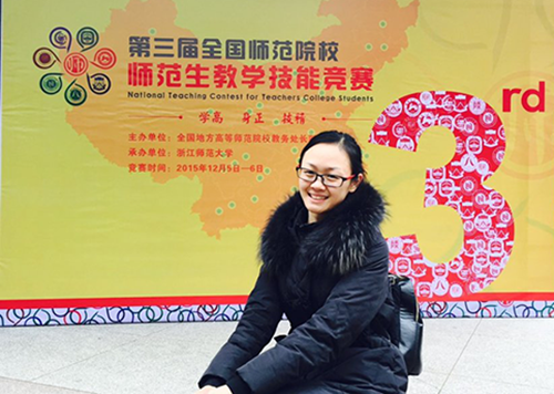 本网讯(通讯员 黄倩)第三届全国师范院校师范生教学竞赛于2015年12月6日落下帷幕,我院汉语言文学专业13级学生黄倩代表金年会征战,经过与来自全国师范院校多名选手的激烈角逐,最终荣获语文组三等奖。这是金年会学生首次参加该项国家级学科赛事并获奖。