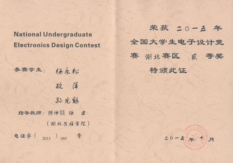 全国大学生电子设计竞赛是教育部倡导的大学生学科竞赛之一,面向大学生的群众性科技活动,目的在于推动高等学校促进信息与电子类学科课程体系和课程内容的改革。竞赛的特点是与高等学校相关专业的课程体系和课程内容改革密切结合,以推动其课程教学、教学改革和实验室建设工作,有助于学生工程实践素质的培养、提高学生针对实际问题进行电子设计制作的能力;有助于吸引、鼓励广大青年学生踊跃参加课外科技活动,为优秀人才的脱颖而出创造条件。自2001年开始由信息工程学院选拔学生进行培训代表金年会第一次参加该项赛事以来,获得了国家二等奖、湖北省特等奖、一、二、三等奖及优胜奖等各类奖项共计100余项。