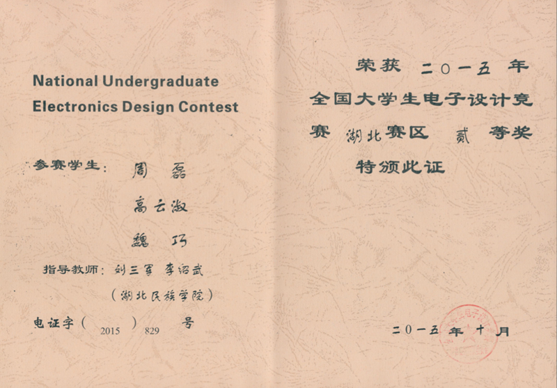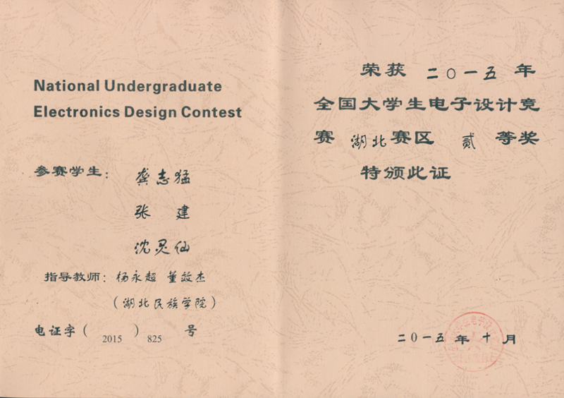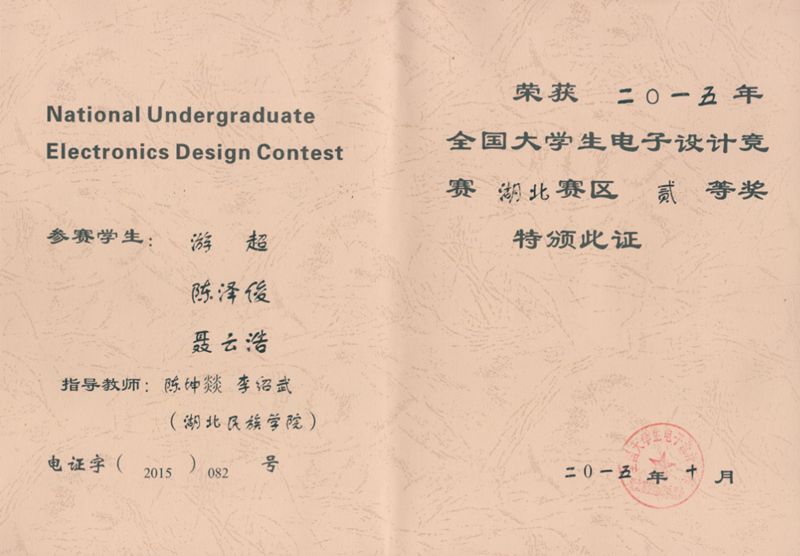 2015年湖北省大学生电子设计竞赛于8月12日-15日成功举行,在学校教务处及信息工程学院等各部门的大力支持下,信息技术创新中心组织指导教师,经过层层筛选,暑期强化训练及实战演练。在最后比赛中,信息工程学院学生获得佳绩。