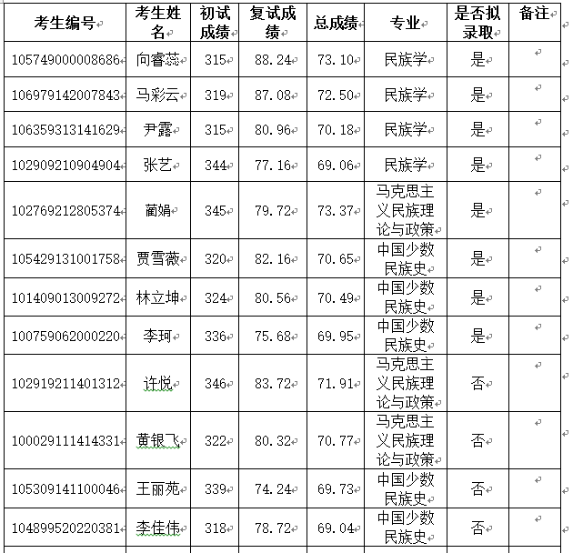 jinnian金年会民族学与社会学学院2019年研究生成绩及拟录取情况公示(调剂生)