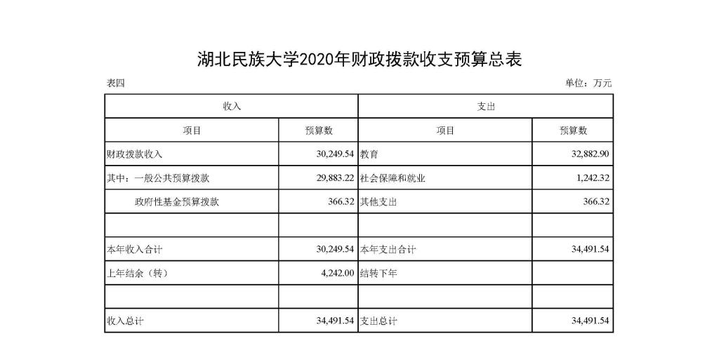 2020年财政拨款收支预算总表