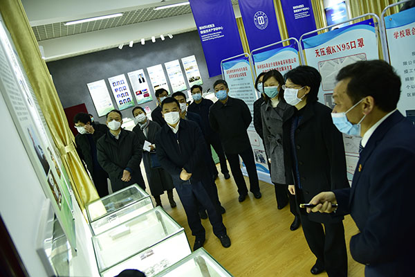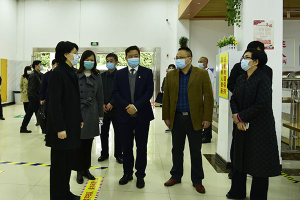 肖菊华一行先后深入学生餐厅、宿舍、医务室等关键场所,仔细查看防疫物资储备、安全防护等情况,听取了吴建清、顿祖义关于疫情防控及复学复课准备工作的汇报, 不时询问相关细节,详细了解防控措施落实情况,叮嘱有关负责同志落实落细防控措施,外防输入、内防反弹。学校要与学生家庭沟通联系,督促家长做好防控工作。同时还要加强对师生的人文关怀与心理疏导,特别要高度重视毕业生就业服务工作,让毕业生们早就业、快就业。