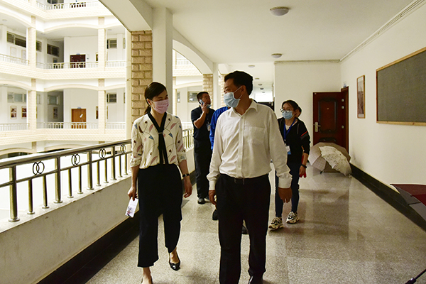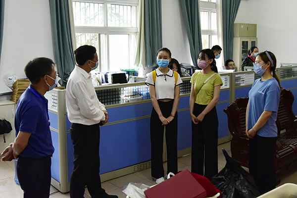 本网讯 6月22日,金年会首批毕业生返校的第二天,党委书记吴建清带领校办、学工处、校团委等单位负责人到各二级学院走访,看望慰问毕业生,了解各学院毕业生工作开展情况。